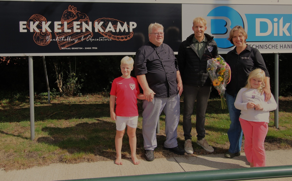 Woensdag 29 oktober | Op zaterdag 26 oktober is in het bijzijn van Roy Ekkelenkamp en zijn familie het nieuwe sponsorbord van Banketbakkerij Ekkelenkamp onthuld.