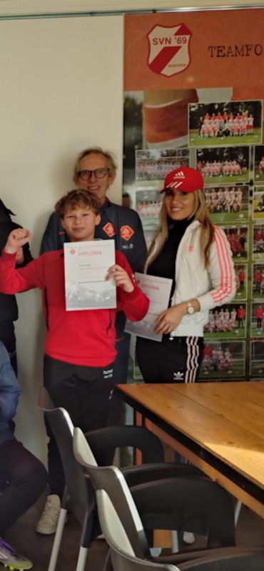 In totaal waren er 15 cursisten van verschillende voetbalverenigingen. In de ochtend werd ingegaan op de theorie, spelregels, looplijnen werden aan de hand van een presentatie uitgelegd, na de goed verzorgde lunch was het tijd voor het praktijk gedeelte. Voor het praktijk gedeelte, had SVN'69 ruim 30 voetballertjes opgetrommeld, zodat de cursisten diverse wedstrijden konden begeleiden, de mede cursisten mochten observeren en feedback geven. Neda en Evert zijn beide geslaagd voor de cursus en ontvingen van Bert Slot het felbegeerde diploma spelbegeleider. Met Neda en Evert is de arbitrage bij DESZ weer een stukje professioneler geworden.