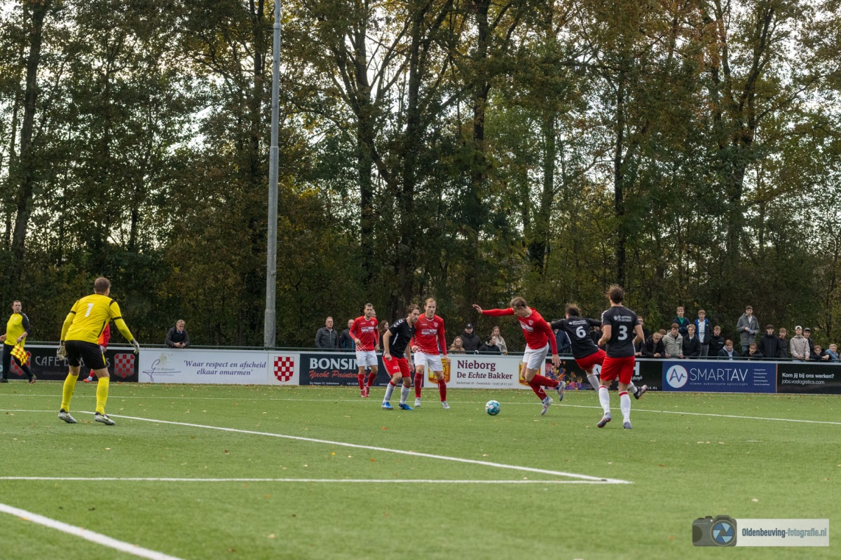 Een fout achterin bij DESZ zette een speler van SVN één-op-één, maar Haverkamp redde knap. Enkele minuten later, na een inworp, combineerden de Nijeveners rondom de zestien. Er volgde een schot, maar opnieuw een goede redding in de korte hoek.