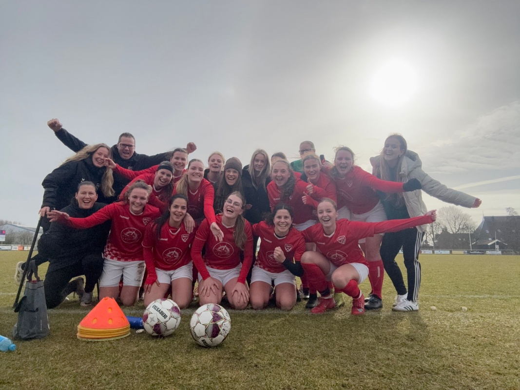 Daarna nam DESZ definitief afstand. Mariel ging mee naar voren en via een combinatie met Hannah en Daphne werd de 1-3 binnengeschoten. Hannah breidde de voorsprong verder uit, onder meer met een doelpunt direct uit een corner en een benutte strafschop: 1-5. Wat fijn om die er na ruim 3 maanden blessureleed weer bij te hebben!! Het slotakkoord kwam voor een groot deel op het conto van Marith en Andreea. Marith zag haar schot nog op de lat uiteenspatten, maar dankzij het druk zetten van Andreea raakte de verdediger dusdanig in paniek dat die de bal alsnog keihard in eigen doel ramde 1-6. Niet veel later vond de scheidsrechter het eigenlijk wel welletjes, en floot hij, ondanks dat er nog wel 10 minuten blessuretijd bij mochten komen, voor het einde van de wedstijd.
