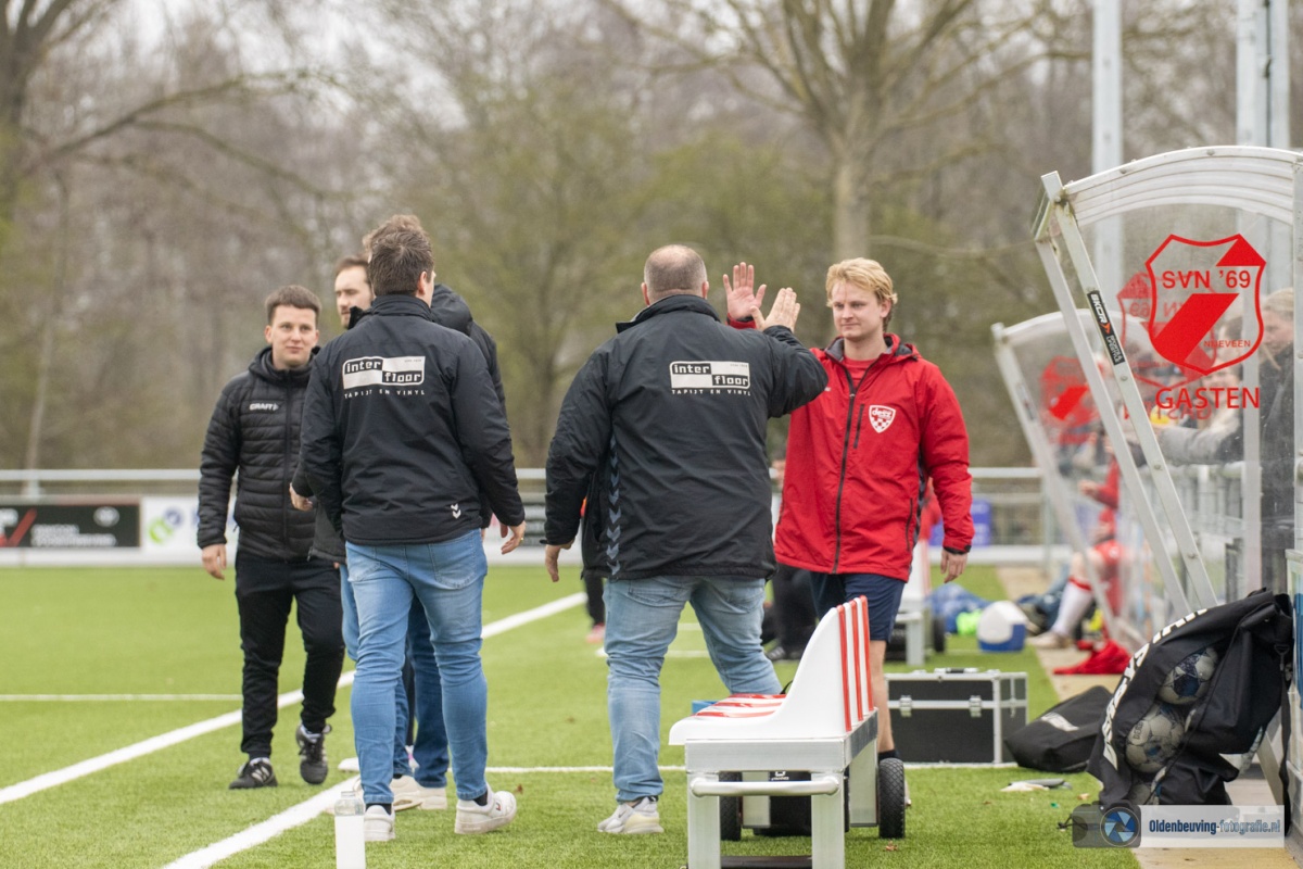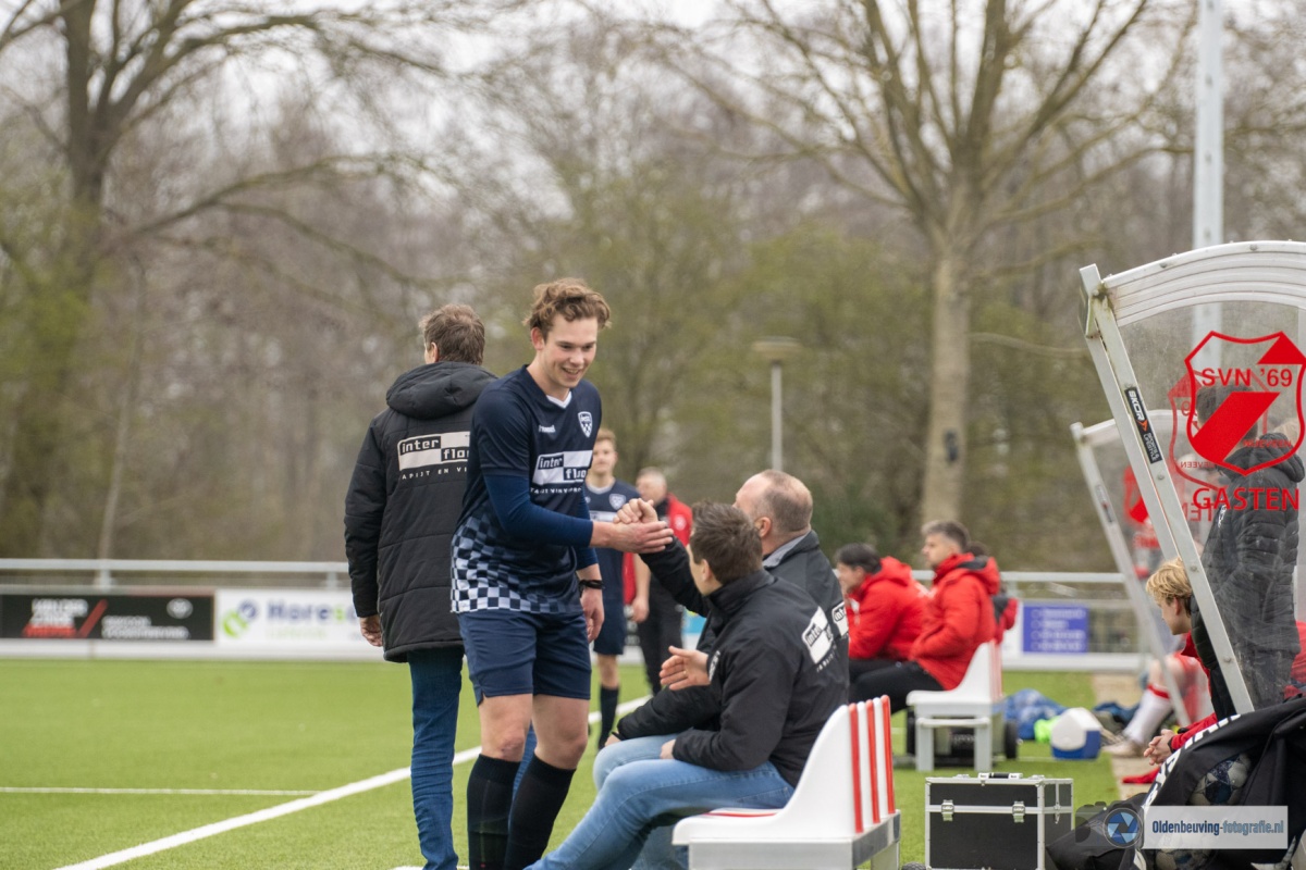 Na de thee is Desz wat rommeliger dan in de eerste helft, maar heeft nog steeds geen moeite met de aanvallende intenties van SVN. De doelman van Nijeveen red knap op een uithaal in de bovenhoek van Holtland.