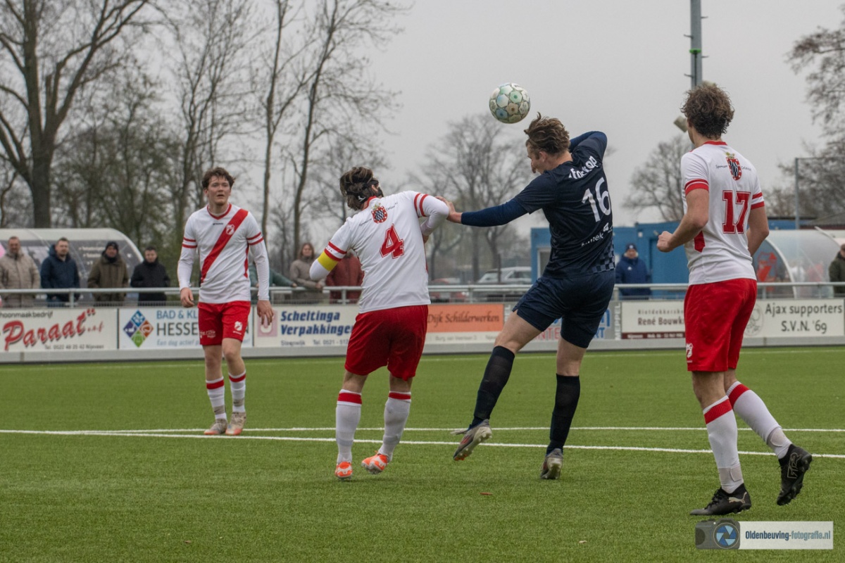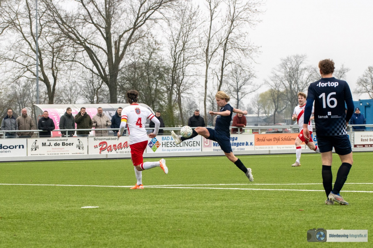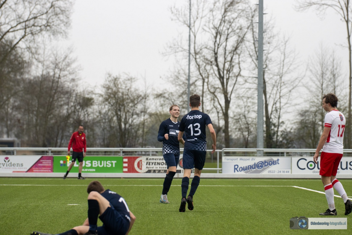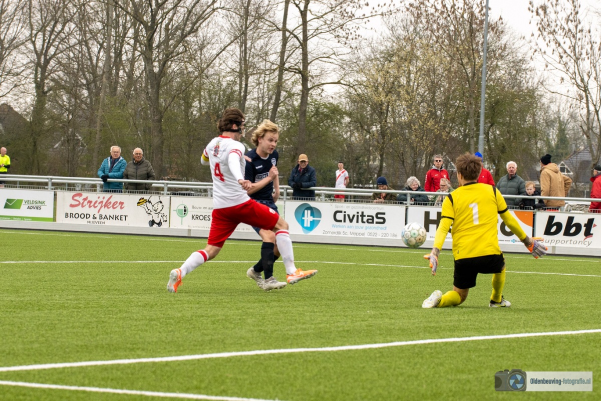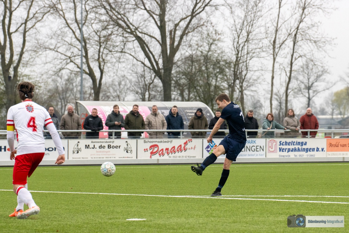 De 0-4 laat niet lang op zich wachten. Een voorzet vanaf de linkerkant, beland in de voeten van Schoonewelle en die aarzelt niet. Met een schuiver bepaald hij de eindstand en zo wint Desz dik verdiend in Nijeveen.