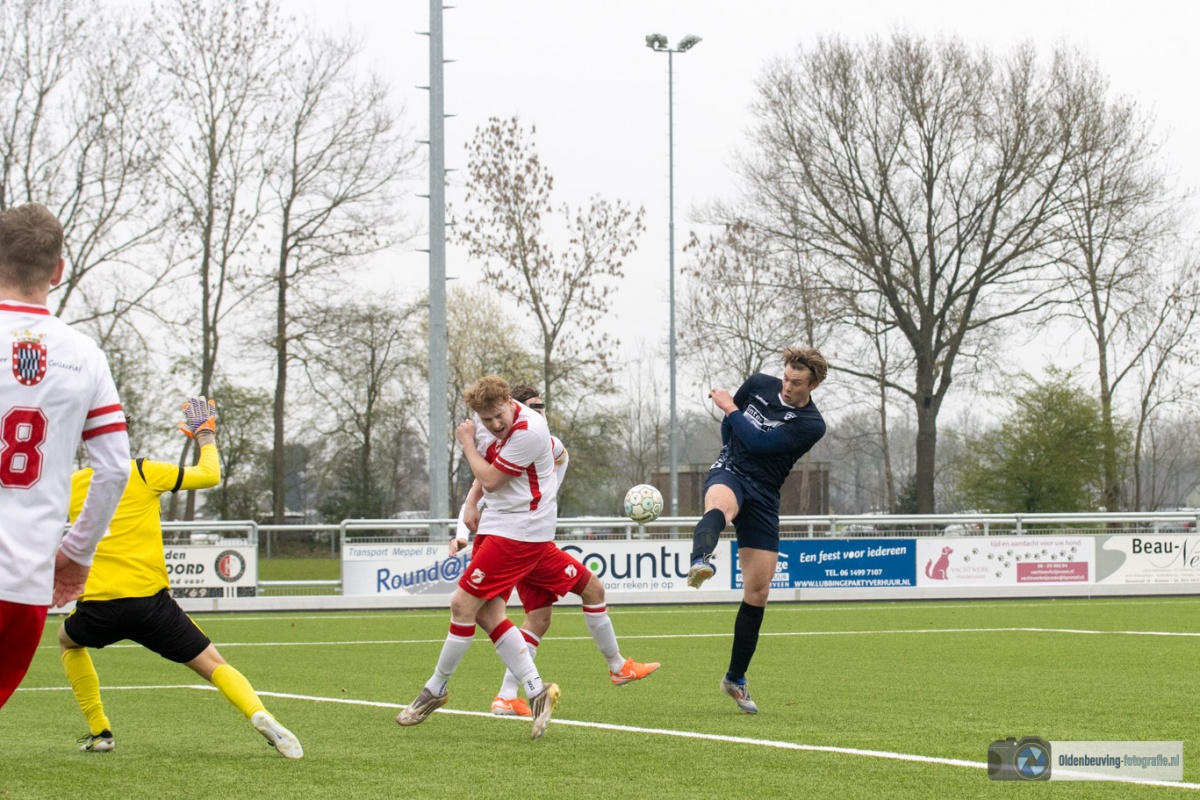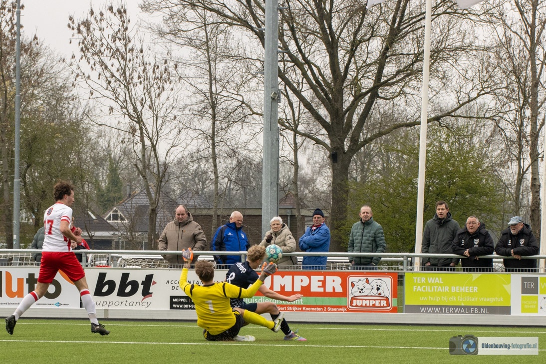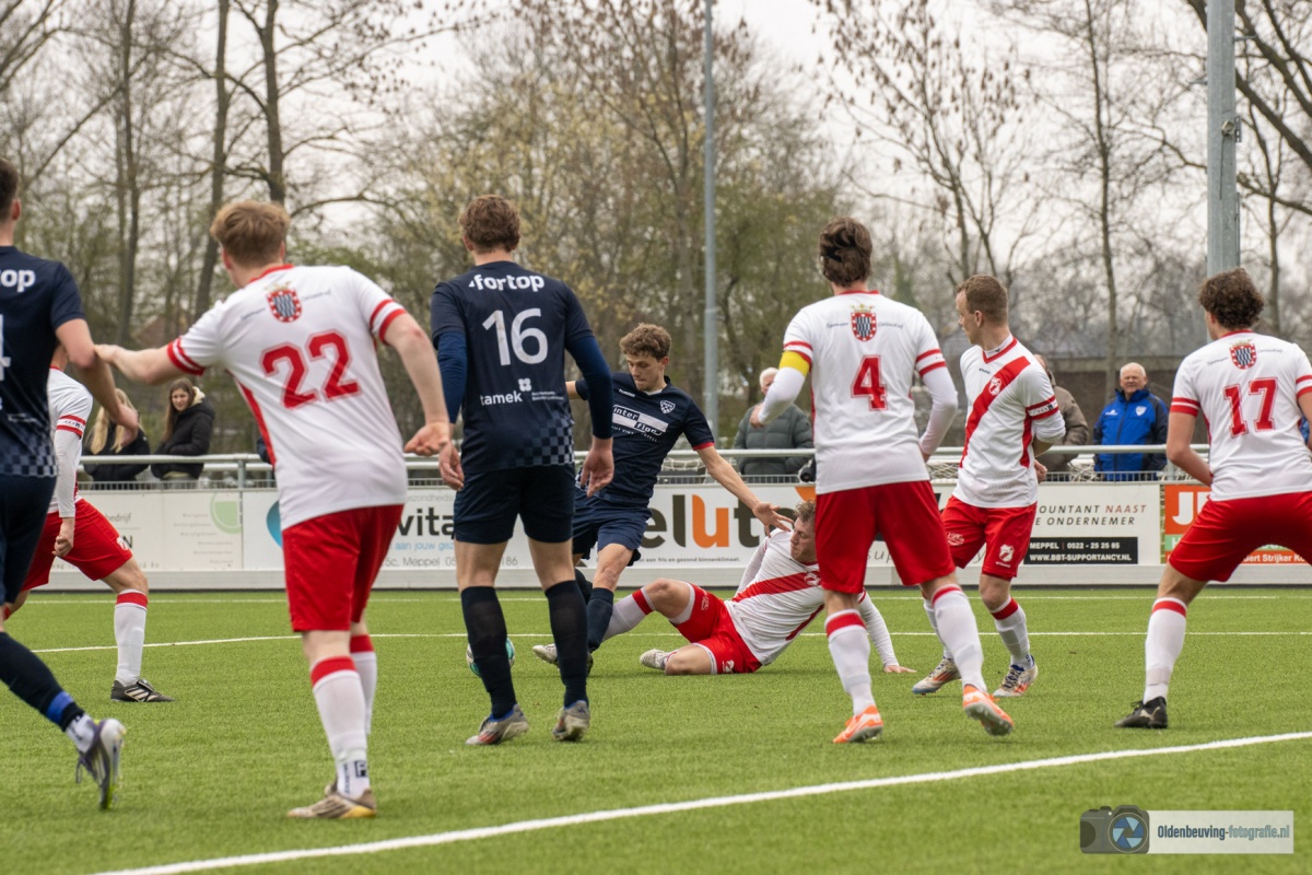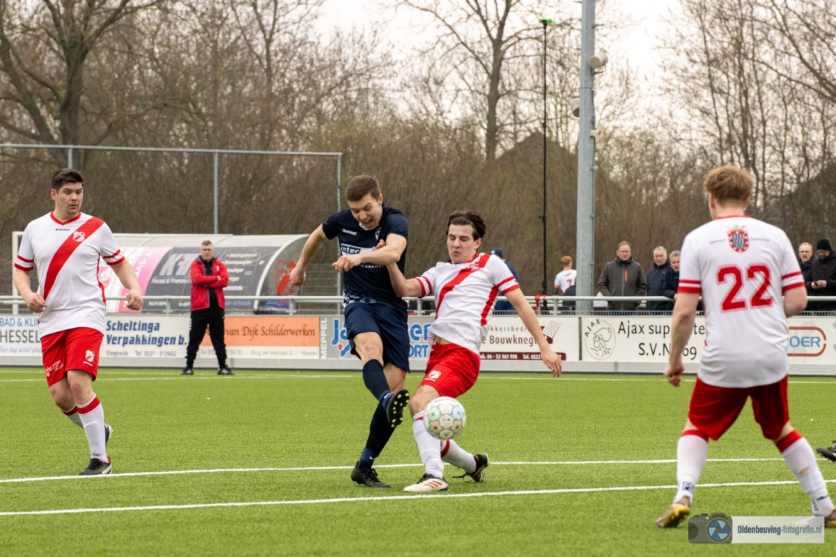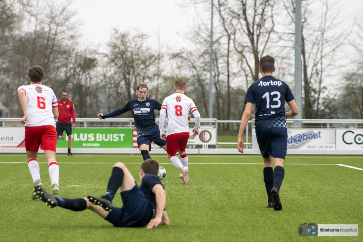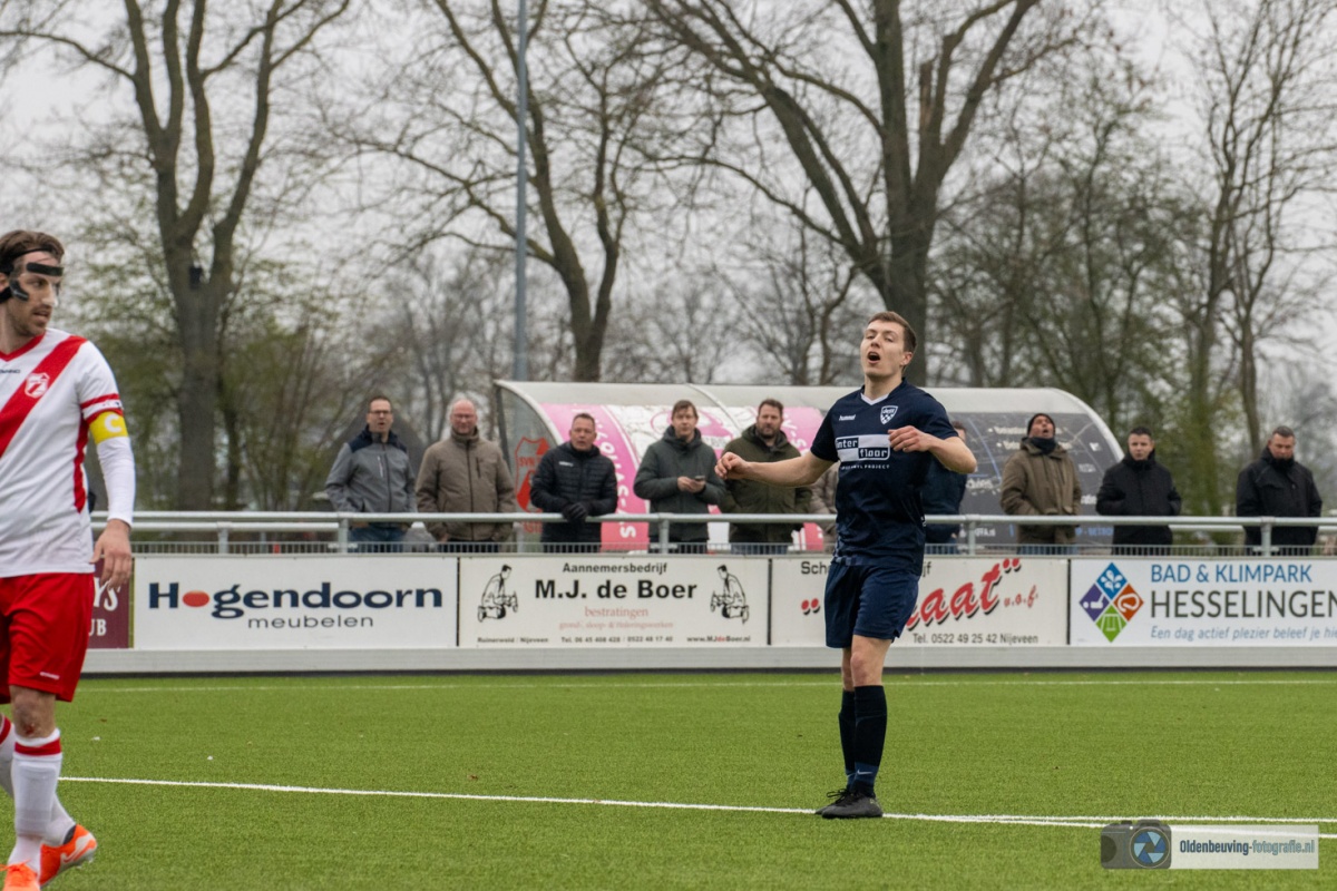 De 0-4 laat niet lang op zich wachten. Een voorzet vanaf de linkerkant, beland in de voeten van Schoonewelle en die aarzelt niet. Met een schuiver bepaald hij de eindstand en zo wint Desz dik verdiend in Nijeveen.