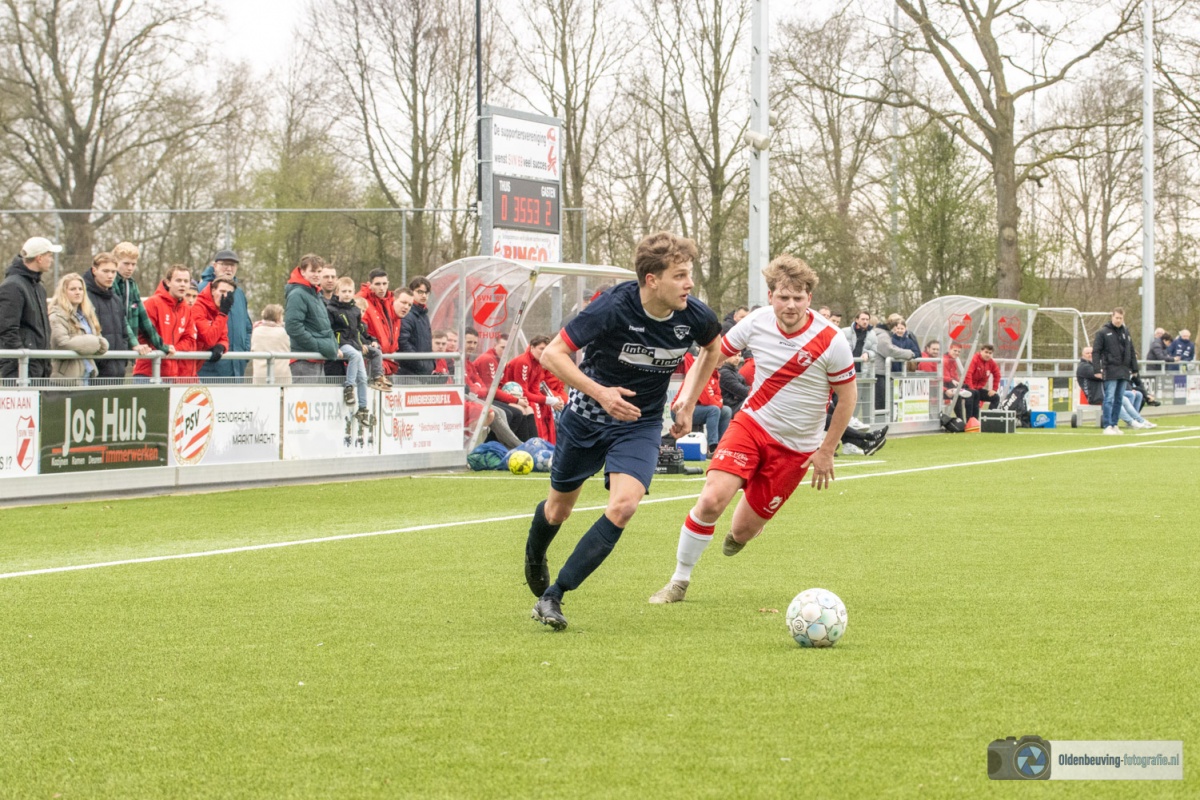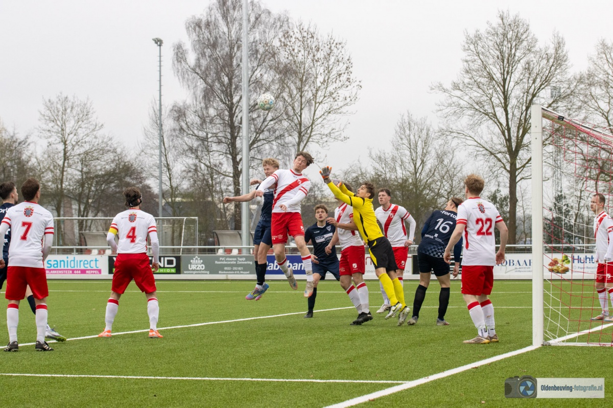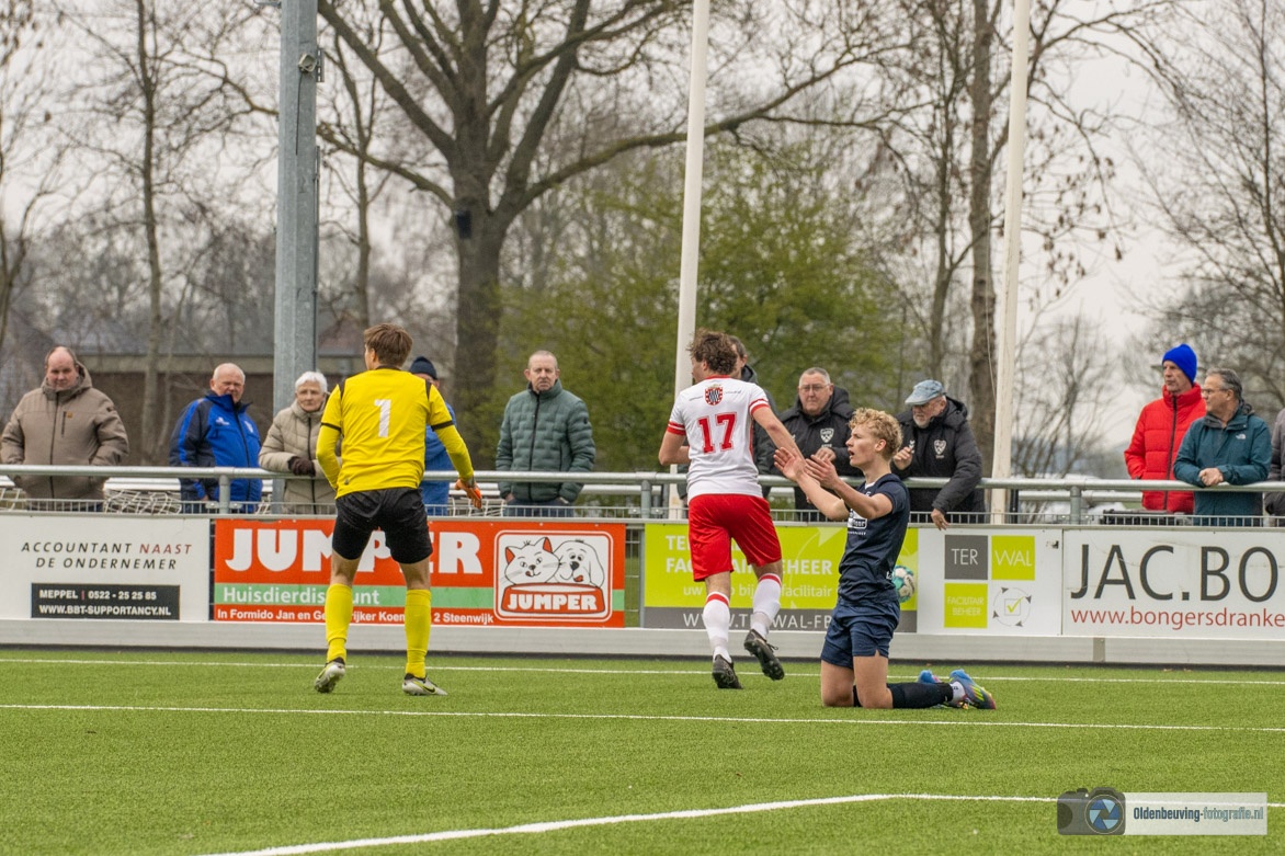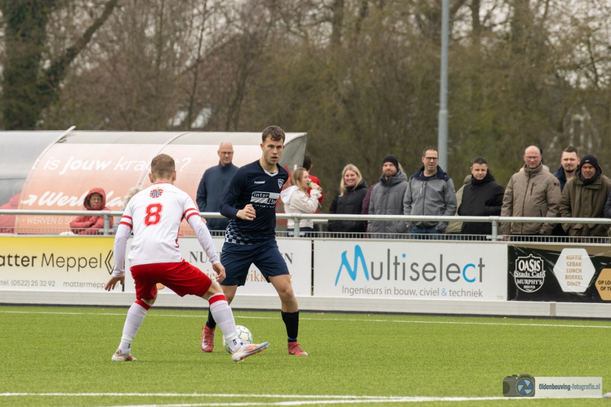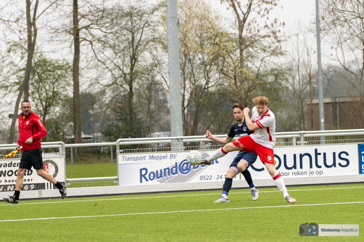 De 0-4 laat niet lang op zich wachten. Een voorzet vanaf de linkerkant, beland in de voeten van Schoonewelle en die aarzelt niet. Met een schuiver bepaald hij de eindstand en zo wint Desz dik verdiend in Nijeveen.