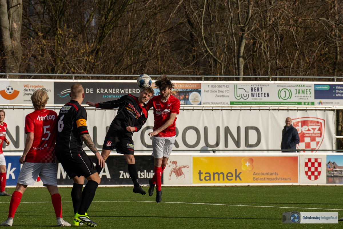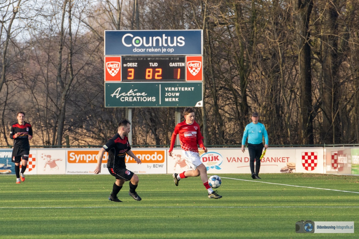 Maandag 9 februari | Desz heeft afgelopen week een volwassen pot voetbal gespeeld tegen Swift en zet het deze week door naar de competitie met een winst van 4-1 tegen Elim. Waar de sluzigers de 1e helft heel dominant waren, werd Elim de 2e helft iets gevaarlijker.