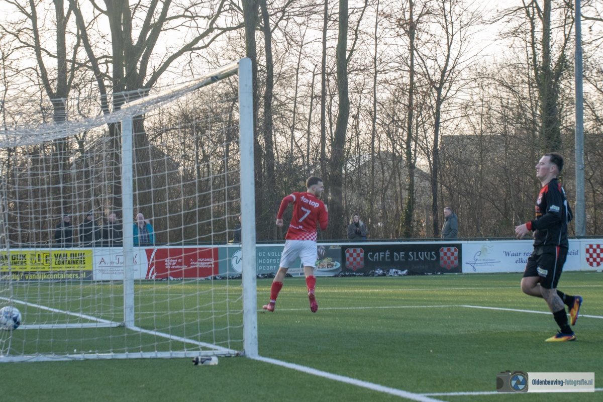 Na grote kansen van A. Krabbe en R. Krabbe is het wachten op de tweede treffer. Dan komt een paar minuten later toch de tweede. R. Krabbe speelt A. Krabbe vrij de diepte in. Een voorzet over de grond komt terecht bij Lassche die de bal genadeloos in het dak van het net schiet (2-0).