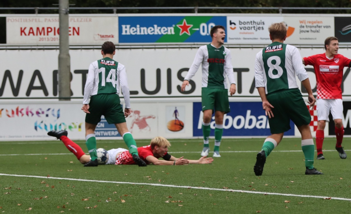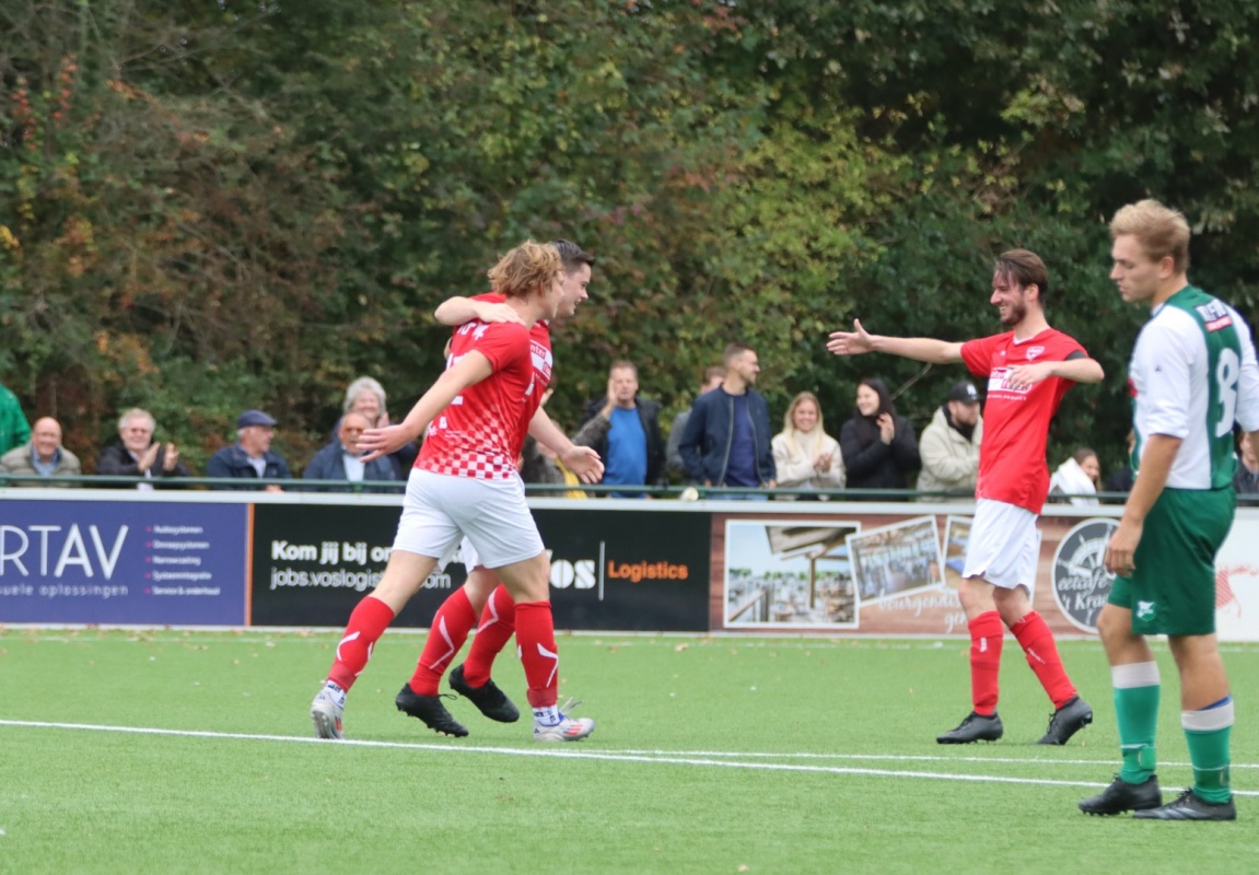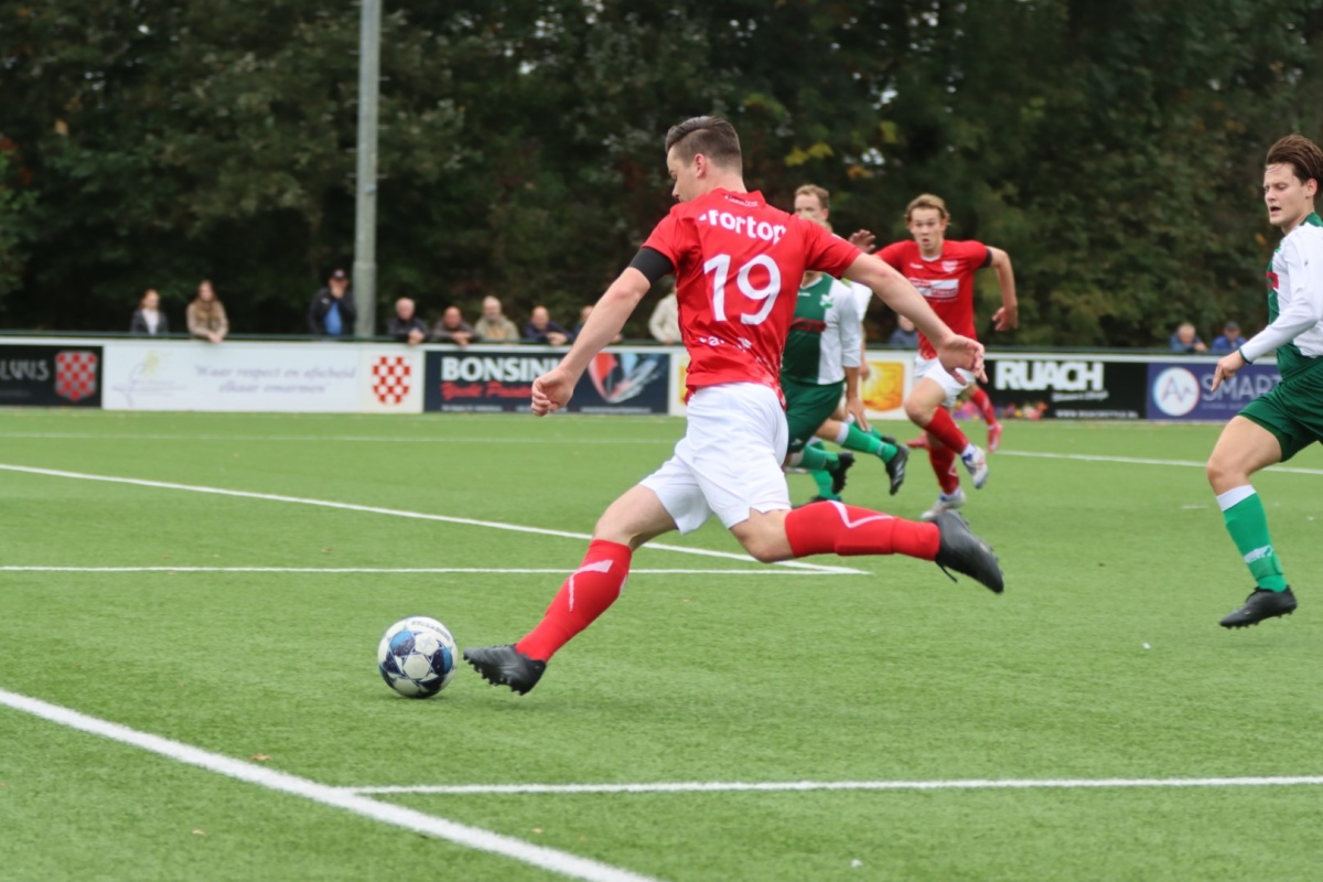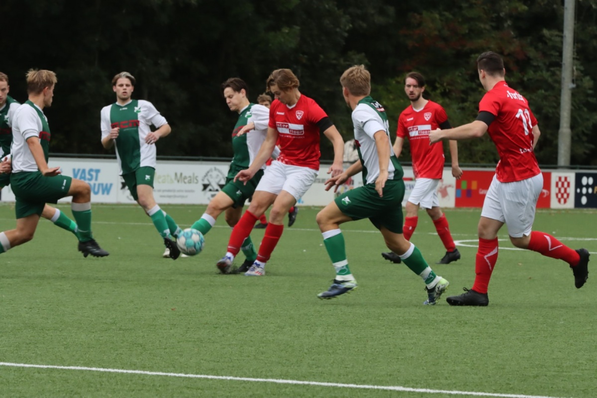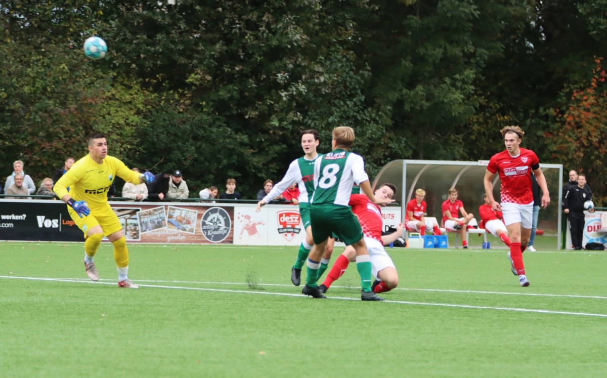 Vijf minuten voor rust viel dan toch de gelijkmaker. Goed drukzetten van Horst en Krabbe leverde balbezit op voor Horst, die de bal knap achter de keeper schoot. In de resterende minuten voor de rust gebeurde er weinig noemenswaardigs meer.