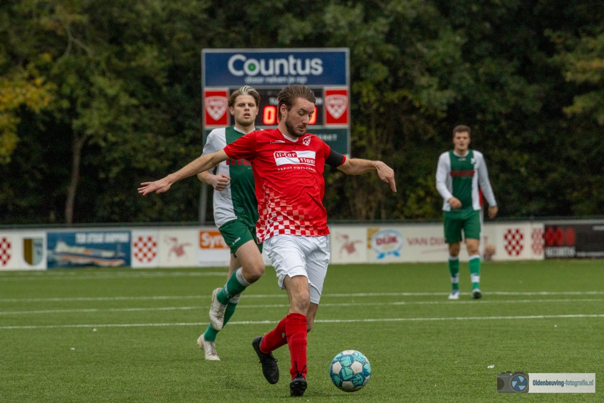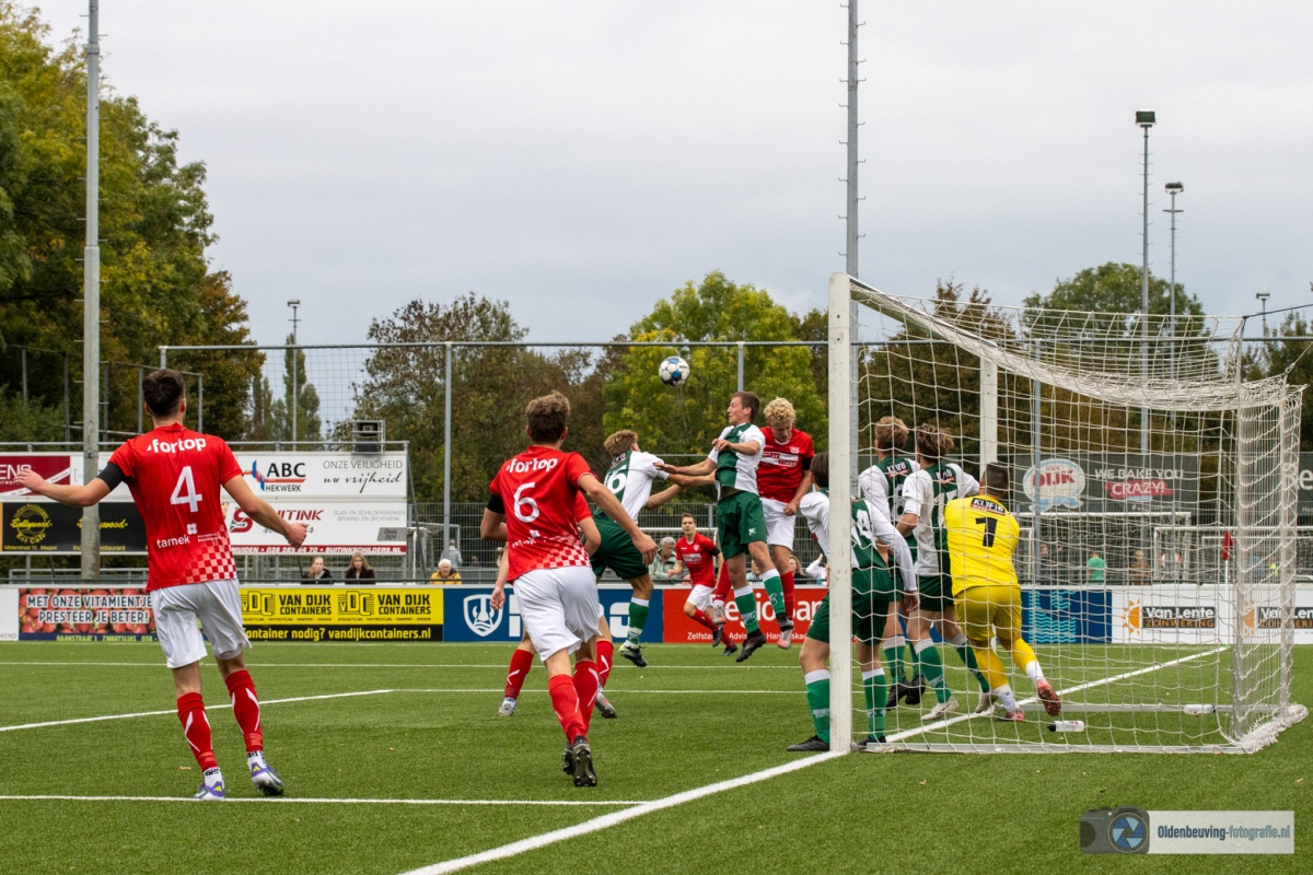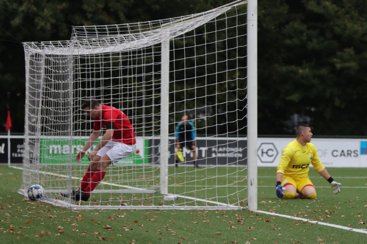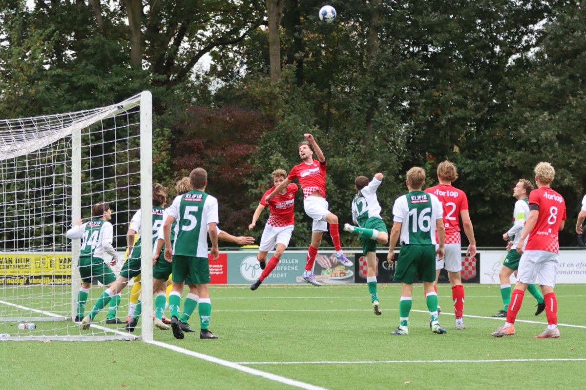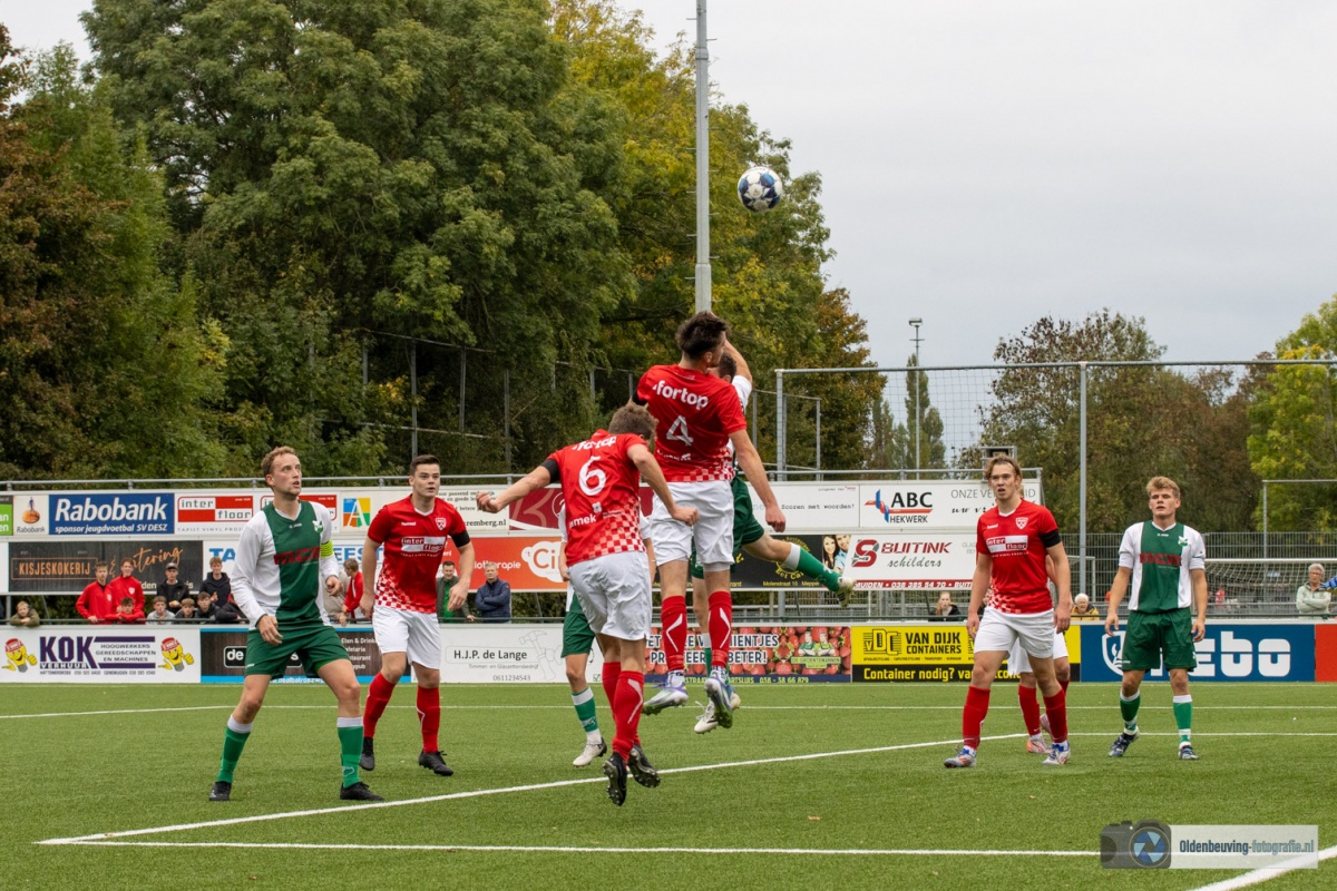 Vijf minuten voor rust viel dan toch de gelijkmaker. Goed drukzetten van Horst en Krabbe leverde balbezit op voor Horst, die de bal knap achter de keeper schoot. In de resterende minuten voor de rust gebeurde er weinig noemenswaardigs meer.