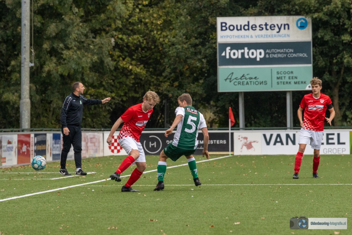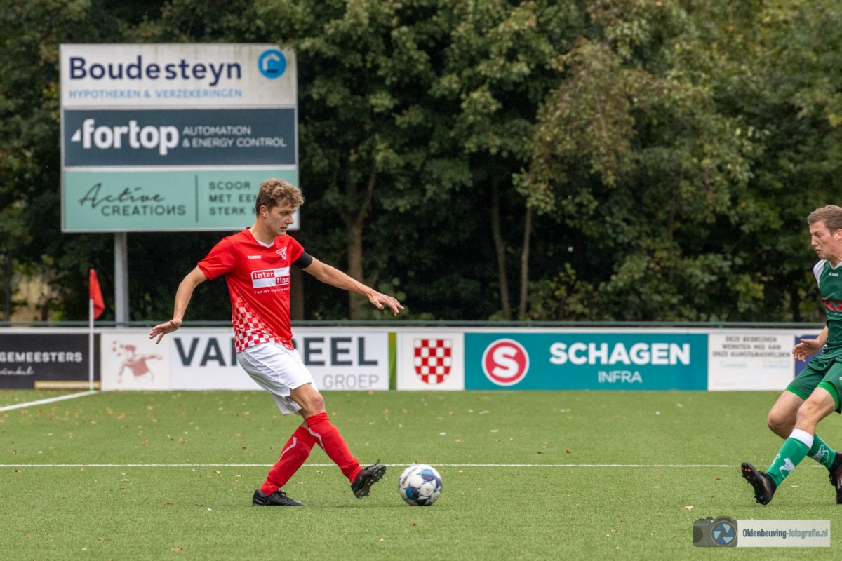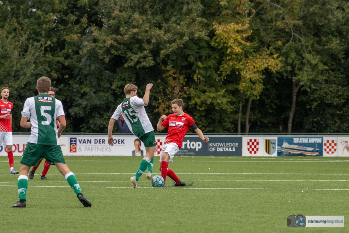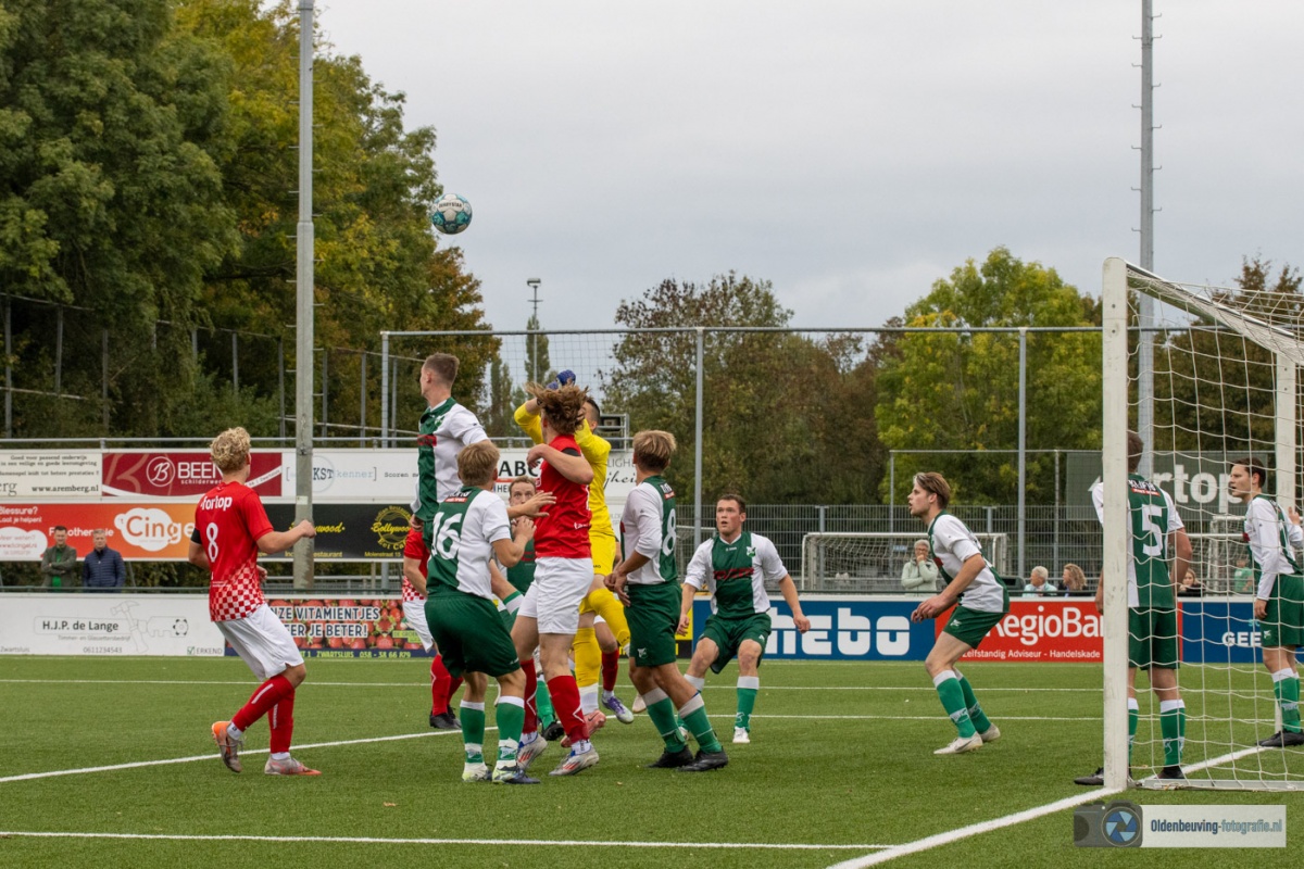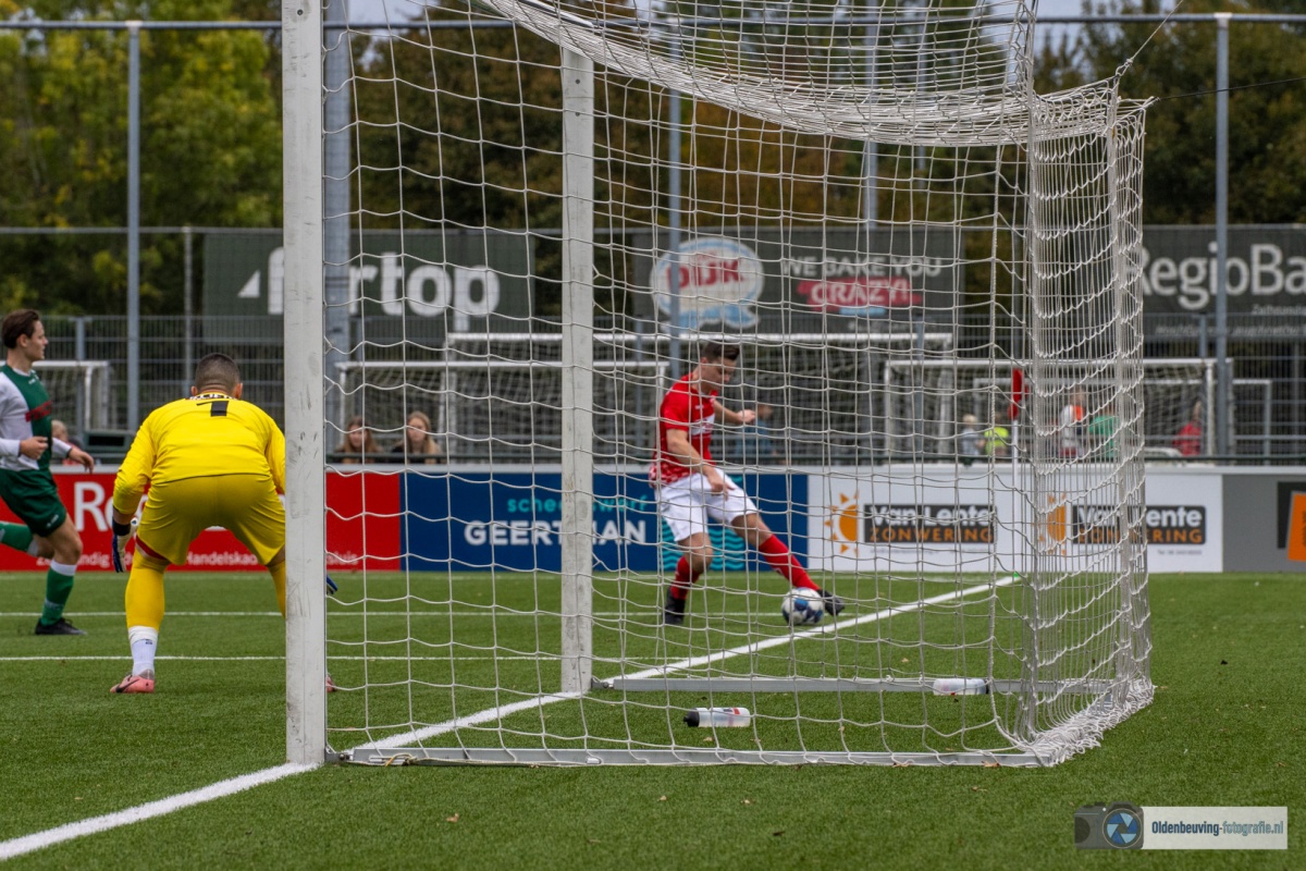 Vijf minuten voor rust viel dan toch de gelijkmaker. Goed drukzetten van Horst en Krabbe leverde balbezit op voor Horst, die de bal knap achter de keeper schoot. In de resterende minuten voor de rust gebeurde er weinig noemenswaardigs meer.