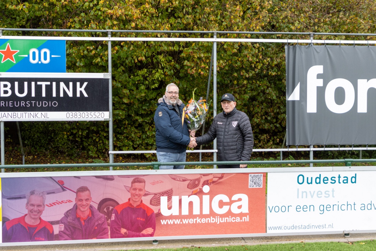 Op ons sportcomplex werd onlangs het nieuwe sponsordoek onthuld. Erbij aanwezig waren Lambert Kats namens Unica en Jan ten Klooster van de sponsorcommissie.